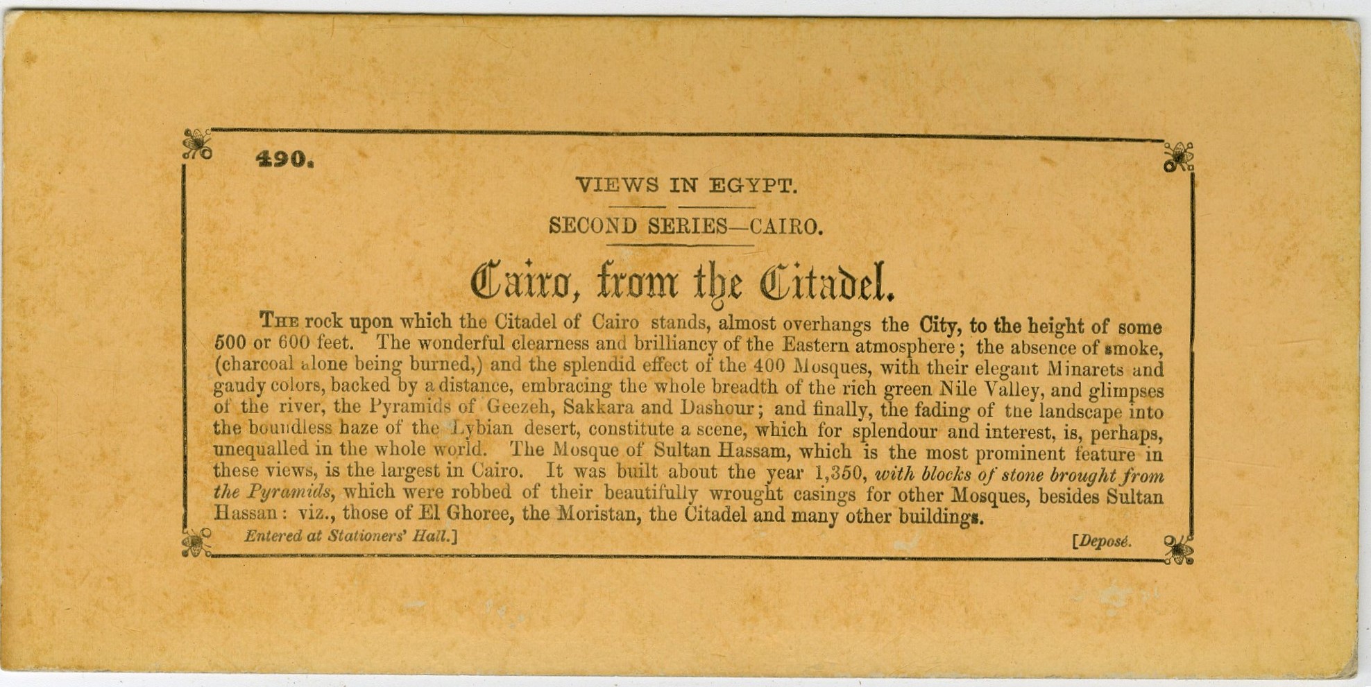 Mideast500. Charles Gaudin, Paris. Egypte. Rene de la Citadelle, Caire. VG. $35