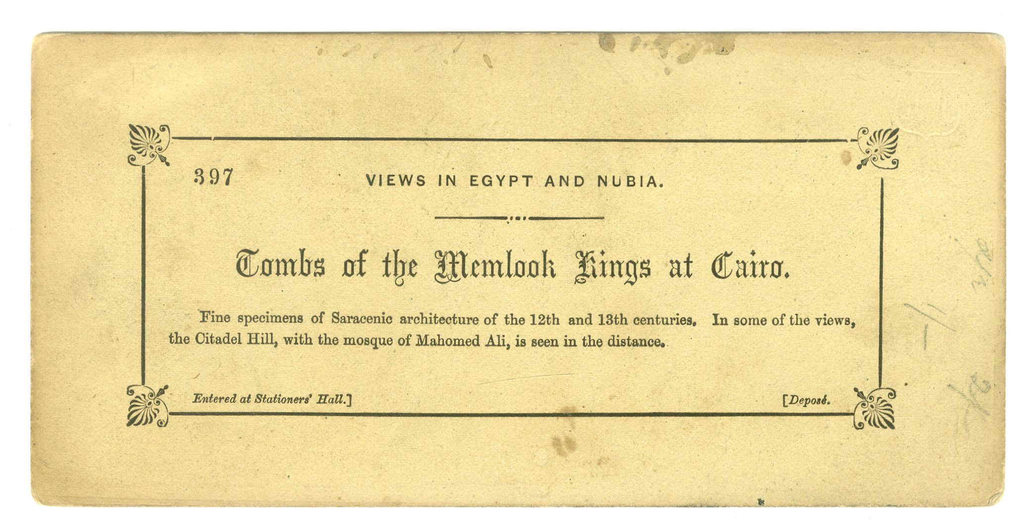 Mideast469. Francis Frith. 397. Views in Egypt and Nubia. Tombs of the Memlook Kings at Cairo. VG. $30