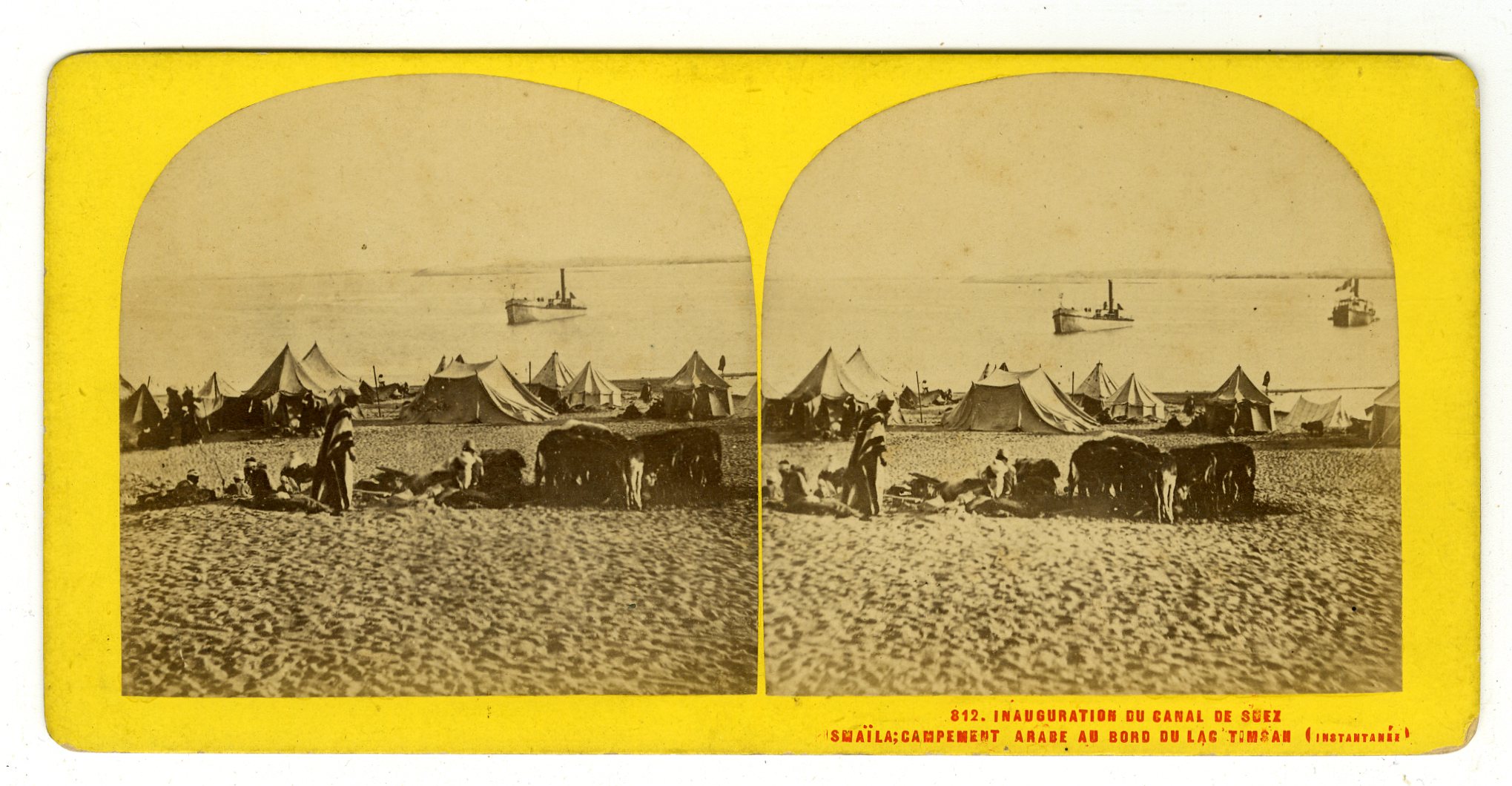 Mideast482. 812. Inauguration du Canal de Suez. Swaila: Campement Arabe au Bord du Lac Timsan (Instantanee). VG. $50