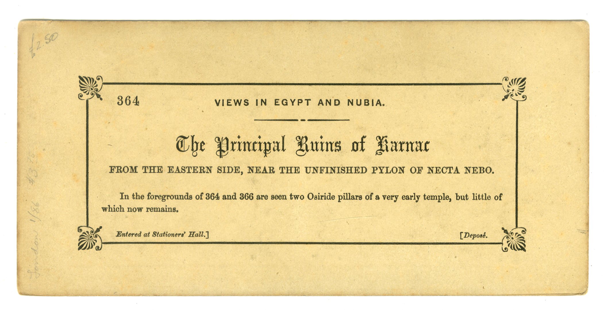 Mideast437. Francis Frith. Views in Egypt and Nubia. 368. The two Obelisks and part of the Hall of Columns at Karnac. G. $35