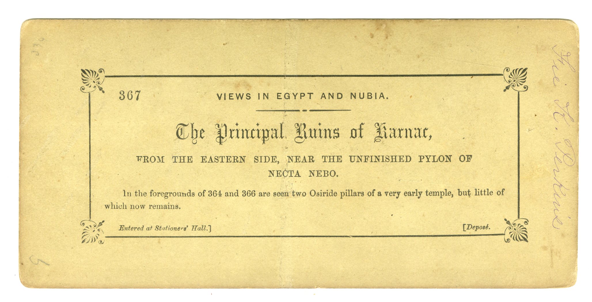 Mideast531. Francis Frith. Views in Egypt and Nubia. 367. The Principal Ruins of Karnac from the Easter side, near the Unfinished Pylon of Necta Nero. G. $25