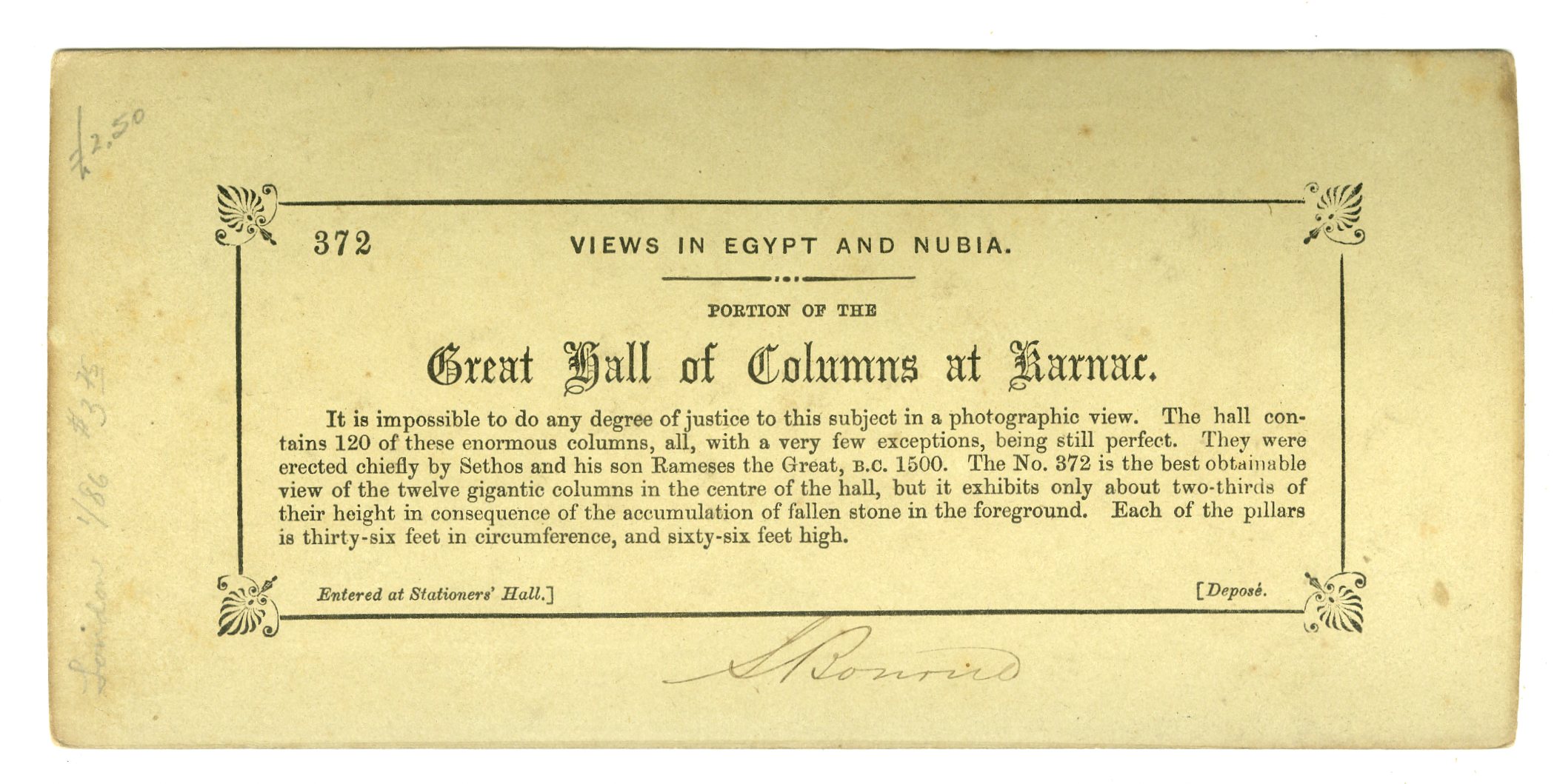 Mideast533. Francis Frith. Views in Egypt and Nubia. 372. Great Hall of Columns at Karnac. VG. $35
