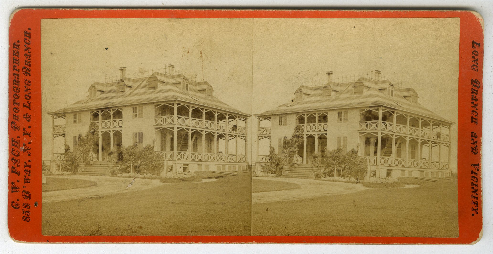 NJ31. G.W. Pach, N.Y., Long Branch and Ocean Grove. Long Branch and Vicinity. Manuscript title on verso “No. 200. Hollywood, Residence of Mr. John Hoey. VG. $35