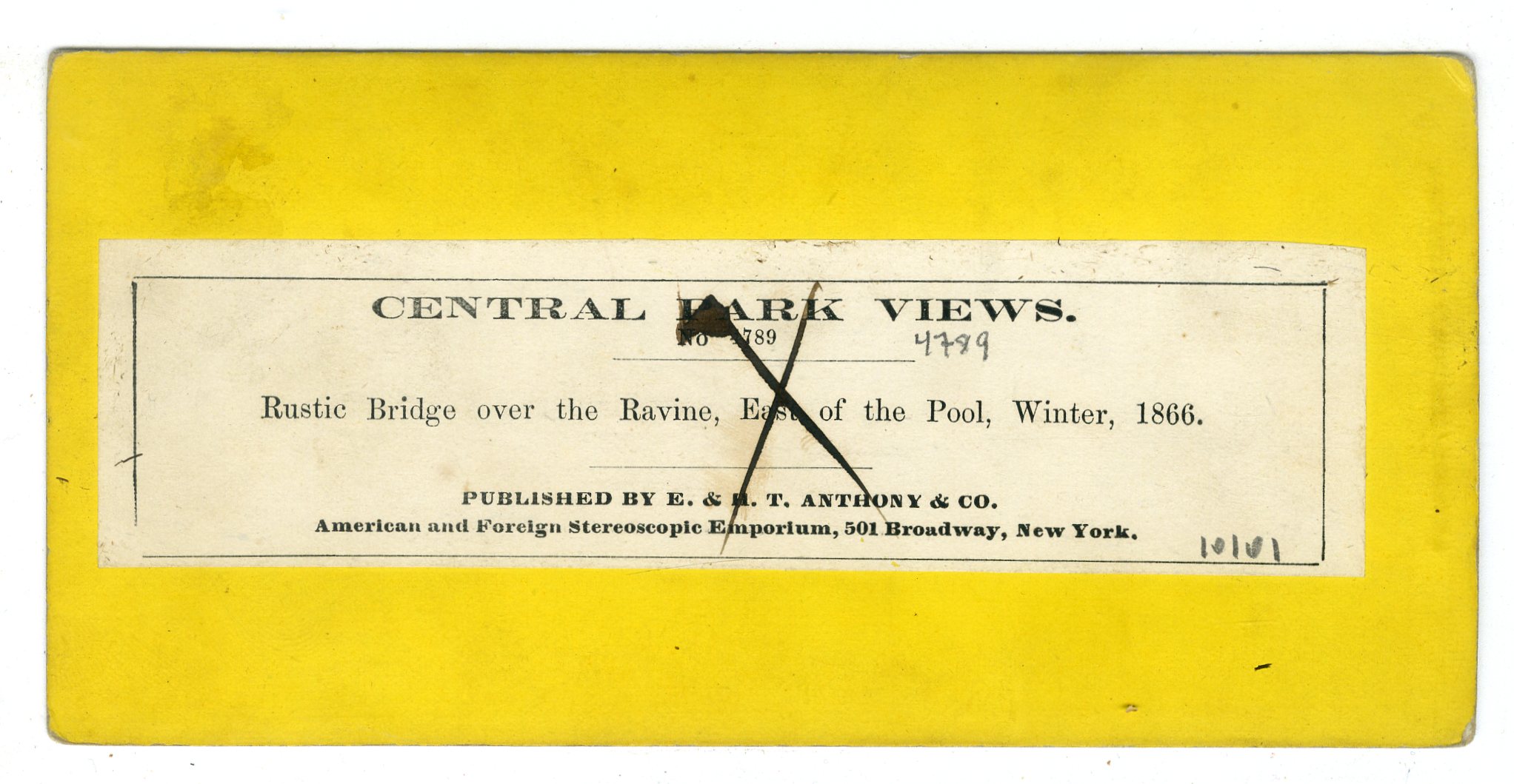 NY773. E&HT Anthony. This view is mislabeled. The actual title is No. 4787. Rustic Stone Arch, South of Harlem Lake. VG. $15
