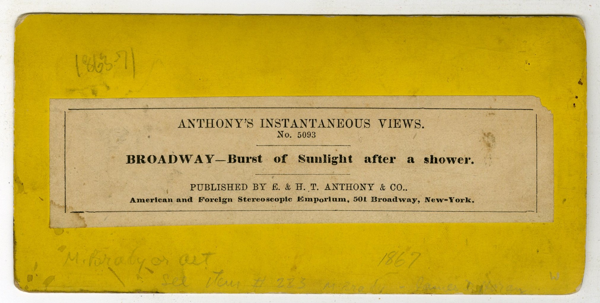 NY904. E&HT Anthony. No. 5093. Broadway-Burst of Sunlight after a shower. G. $25