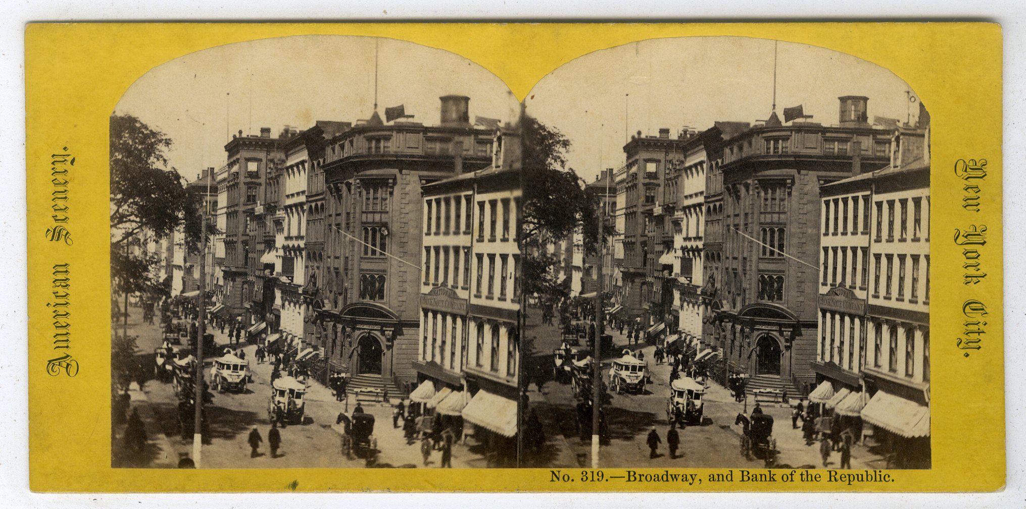 NY920. [George Stacy]. No. 319–Broadway, and Bank of the Republic. VG. $50