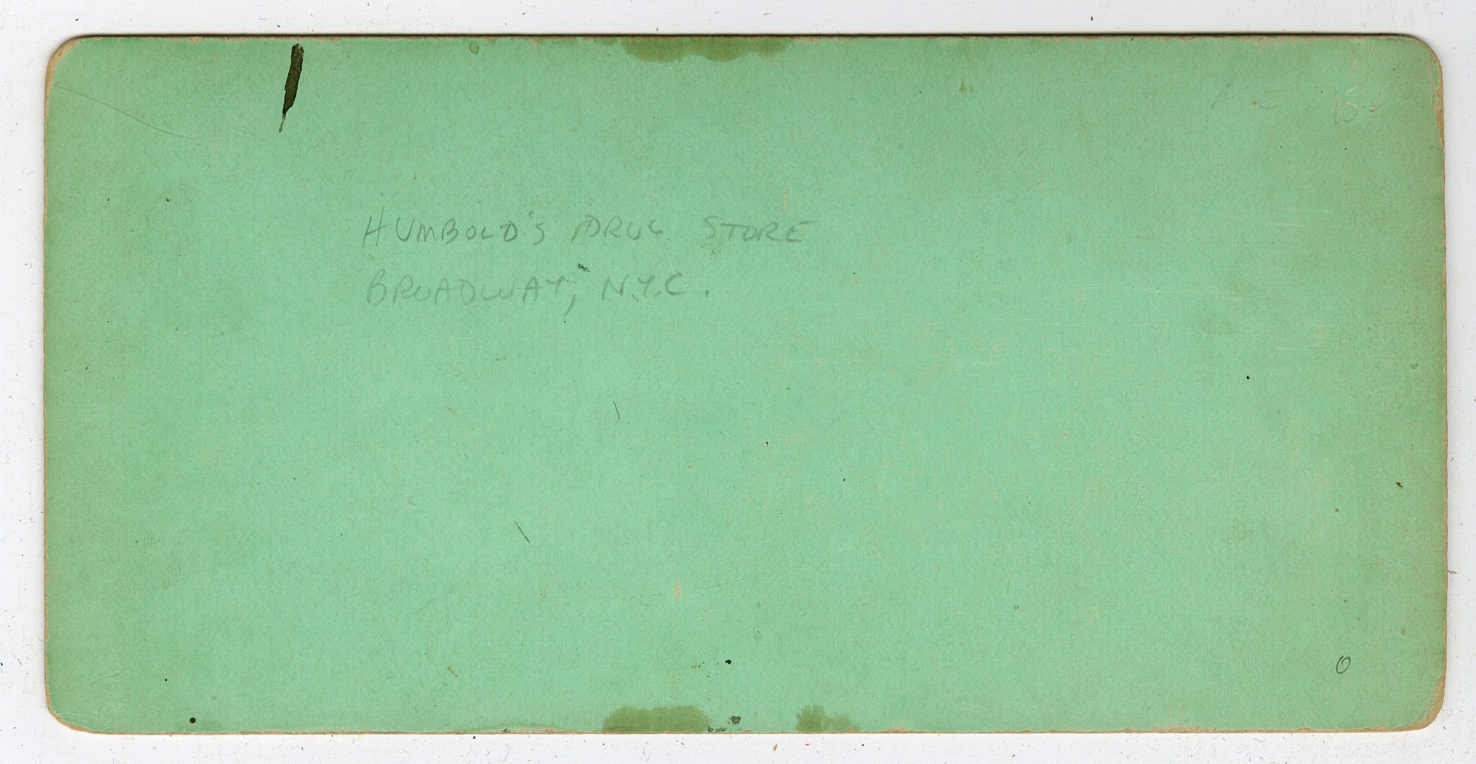 NY944. Stereoview showing the interior of Hembold’s Drug Store at 594 Broadway, near Prince Street, operated by Dr. Henry T. Helmbold. This store was located at 594 Broadway, on the east side near Prince Street, positioned between the Metropolitan Hotel and Niblo’s Garden, opposite the San Francisco Minstrel Hall. It was considered the “wonder of the city” in its time. Dr. Henry T. Helmbold (1826–1894), was a Philadelphia-born pharmacist known for selling patent medicines. The store was famous for “Helmbold’s Buchu,” a popular patent medicine concoction used for various ailments. The store was noted for its luxurious,, Victorian-era,, and “gilded” interior. Fair. $25