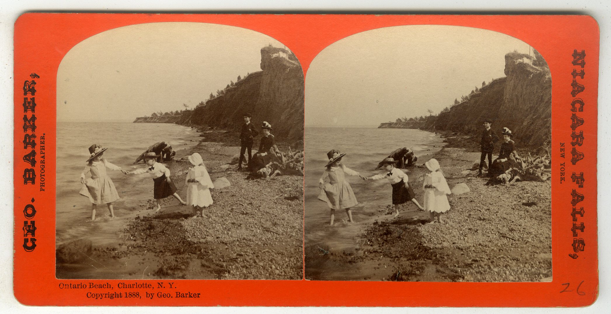 NYS1074. Geo. Barker, Niagara Falls. Ontario Beach, Charlotte, N.Y. Copyright 1888. VG. $10