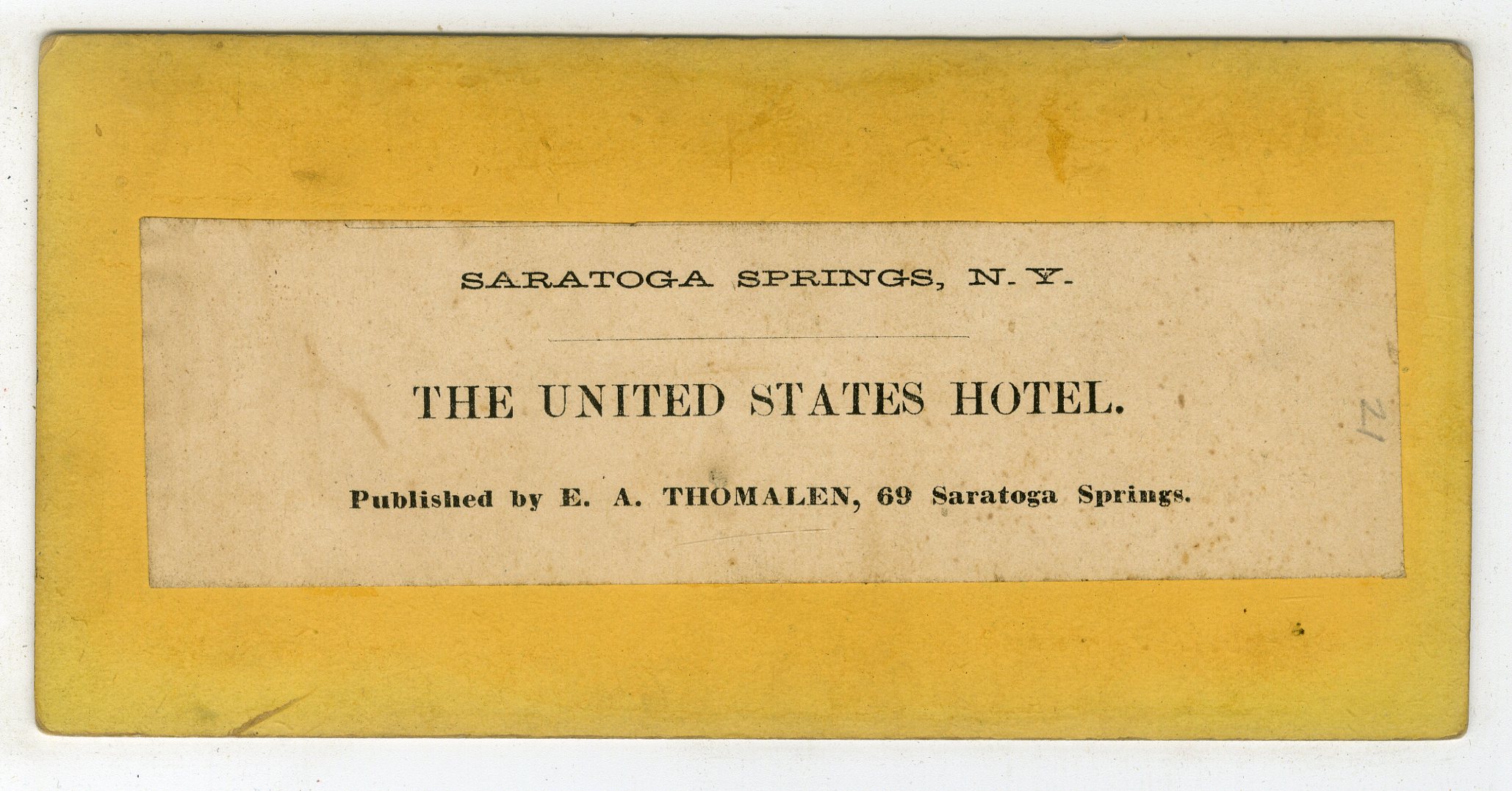 NYS1078. E.A. Thomalen. Saratoga Springs. The United States Hotel. G. $25