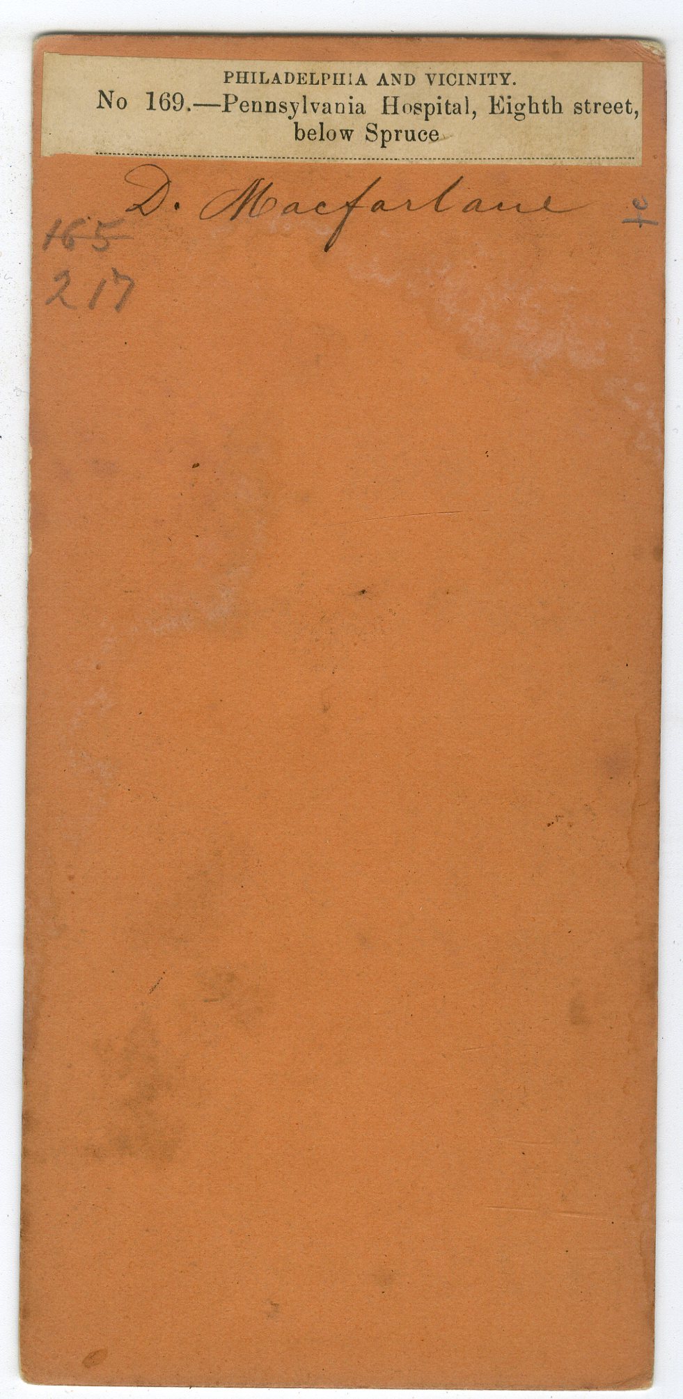 Penn963. No. 169. Pennsylvania Hospital, Eighth Street, below Spruce, Philadelphia. G. $25