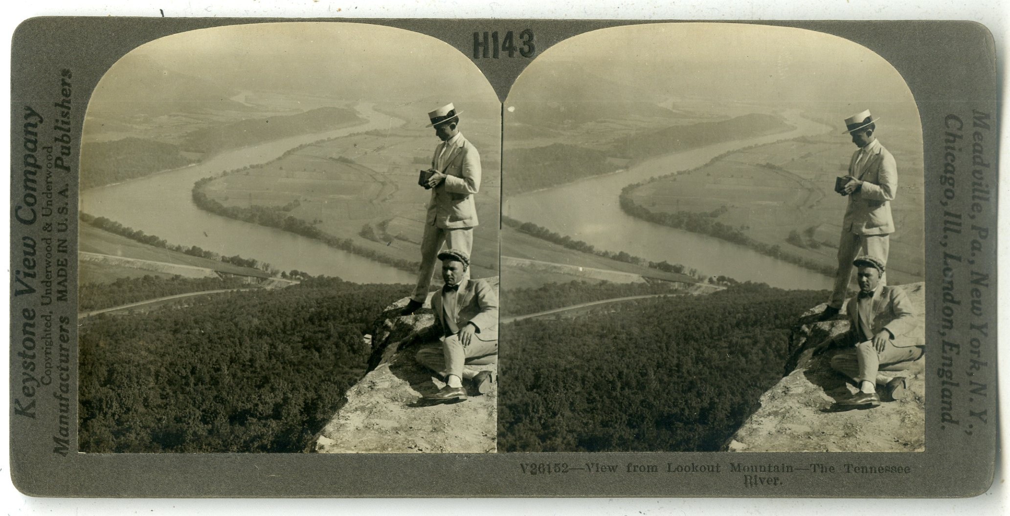 PH240. Keystone. V26152-View from Lookout Mountain-The Tennessee River. Man using a box camera. VG. $10
