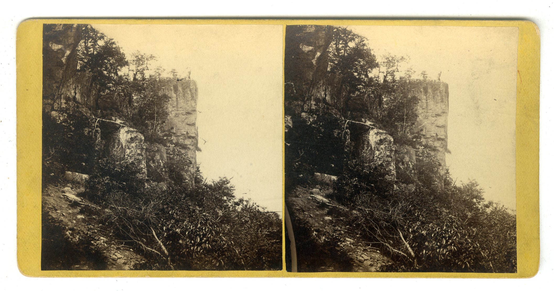 TN83. No ID. Cliffs, Eastern Face of Lookout Mt. Opposite Chicamauga Battle Field. Man and dog stand on cliff edge. VG. $35