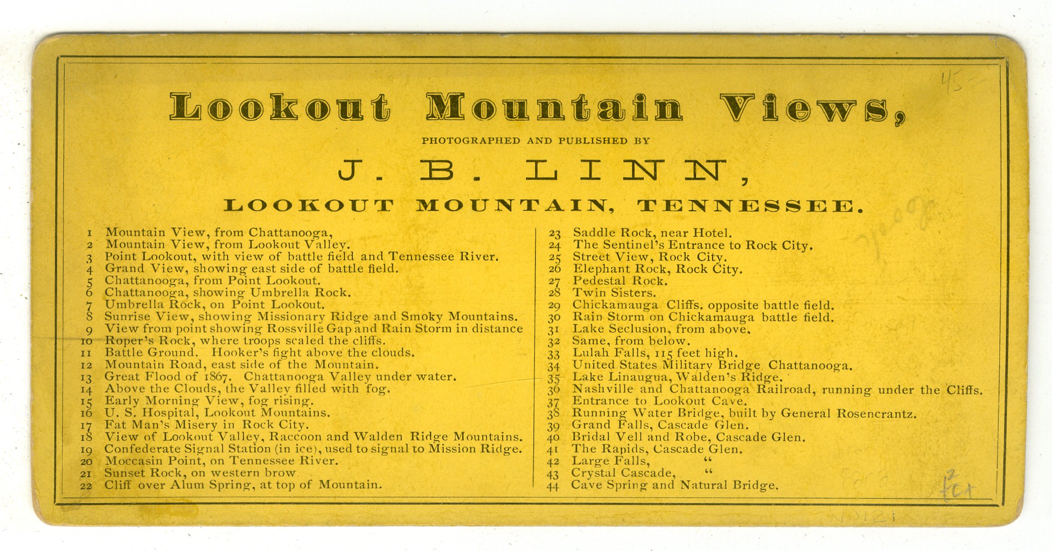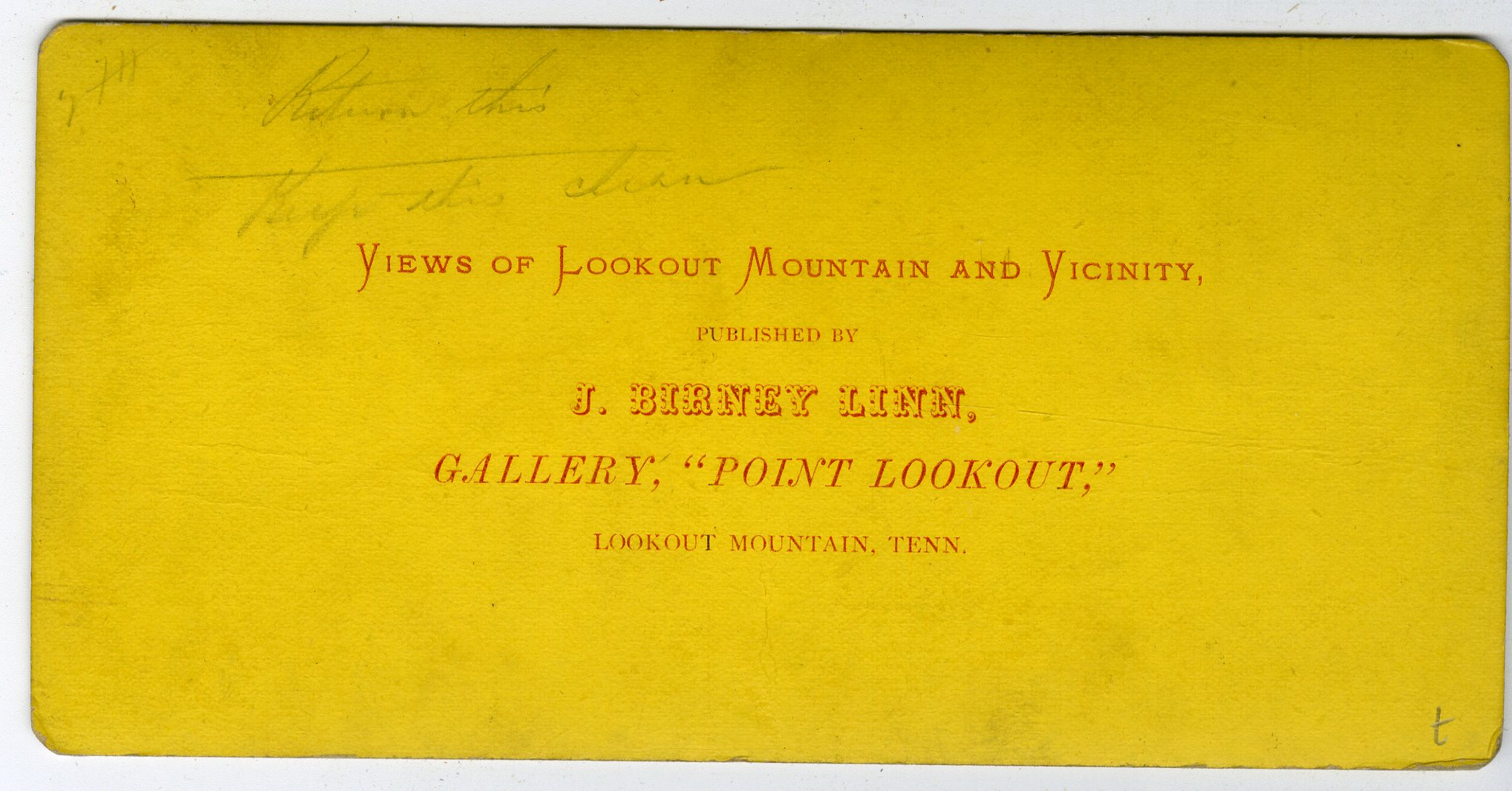 TN92. J. Birney Linn, Gallery, “Point Lookout,” Lookout Mountain, Tenn. Saddle Rock. VG. $50