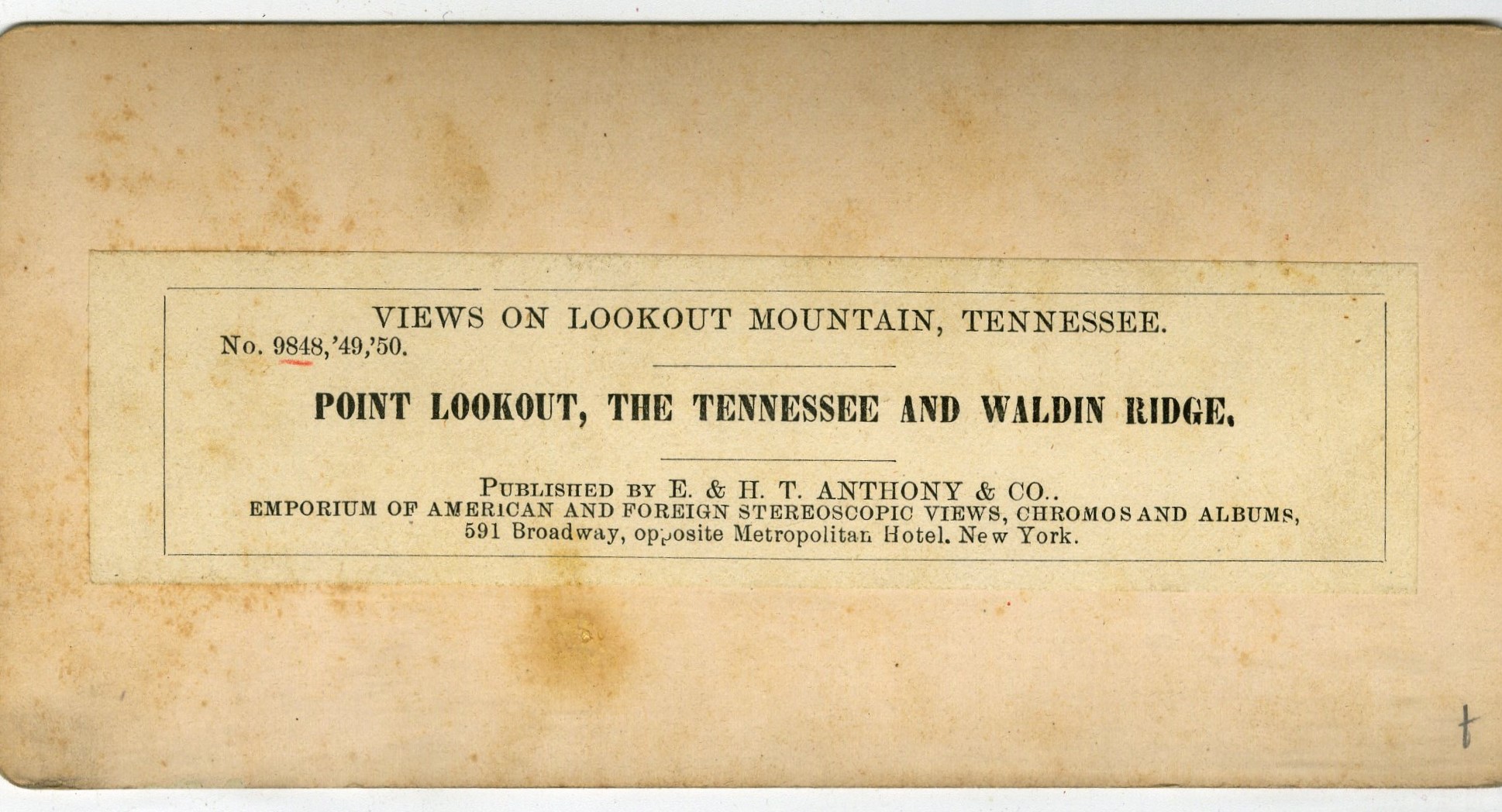 TN93. J. Birney Linn, Gallery, “Point Lookout,” Lookout Mountain, Tenn. The Nashville & Chattanooga Railroad Running Water Bridge. VG. $125