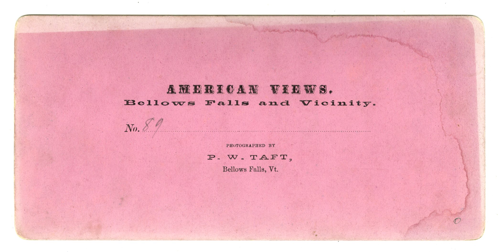 VT112. P.W. Taft, Bellows Falls, Vt. VG. $35