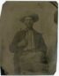 PPTT76. Tintype, 3″ x 2.25,” of what appear to be 4 cowboys in from the trail. Housed in a mat and preserver, no case. VG. $175