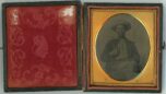 PPTT147. Tintype, 3.75″ x 2.375″ of a silhouetted mother and child. Unusual hidden mother image. VG. $125