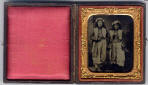 PPTT10. Sixth-plate Tintype of two women in Zouave outfits. Great image. Housed in a full leather case. VG. $350