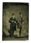 PPTT44. Tintype, 3 1/4″ x 2 3/8″ of two men with firearms, looks like a rifle and a double-barreled shotgun. G. $75